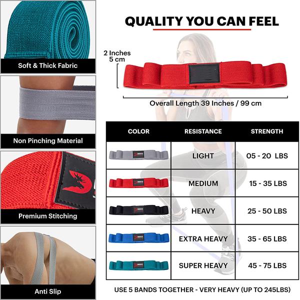 - ✅ EASY TO CARRY AND MANAGE: Portable in nature, these extra-long resistance bands can be easily taken to the gym, office, or even kept at home. With these easy-to-carry fabric resistance bands set, you can exercise anywhere, at any time of the day. You can also wash it easily, either with cold or warm water.